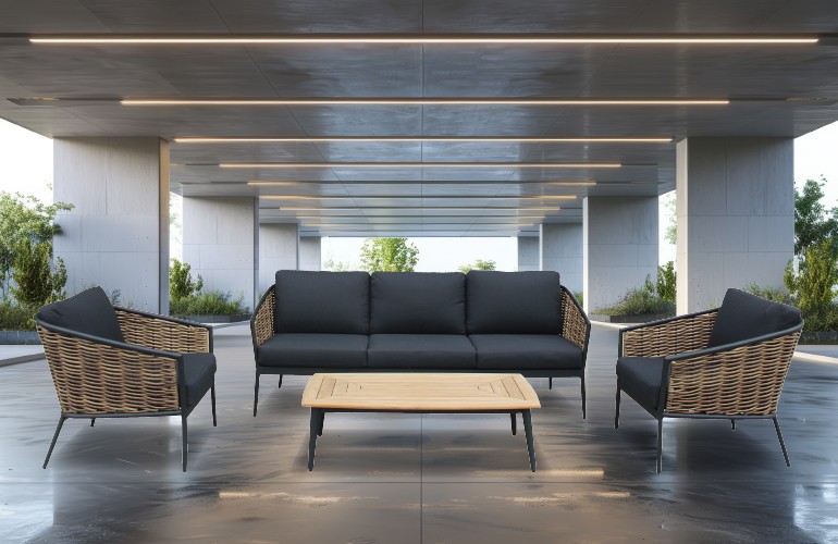 Structure en métal et polymer tréssé. Assises et dossier en tissu résistant. L208 h80 p80 - Faut. L76 h80 p80 (Eco. Part. incluse : 10.20€)