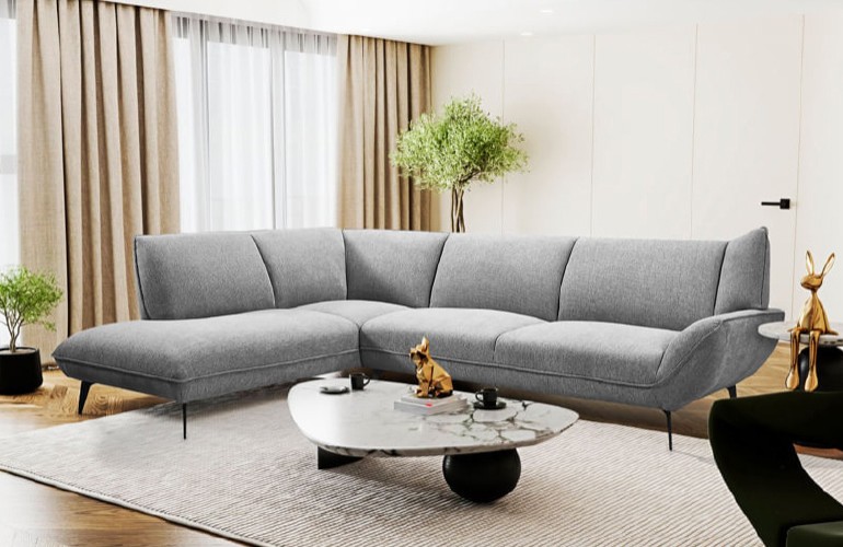 Structure en métal et panneaux de particules recouvert de mousse en polyuréthane haute densité. Assise et dossier en tissu. L274/203 H82 P88 (Eco. part. incluse : 5.85€)