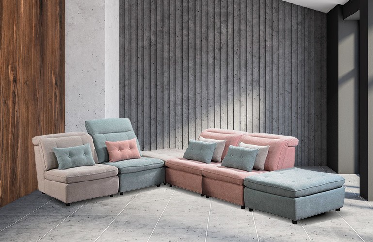 - Canapé Modulable 6 éléments en Tissus