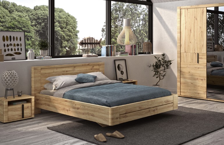 Structure en panneaux de particules finition chêne hélvézia blanchi - Sans literie. (Eco. Part. Incluse : lit : 4.79€