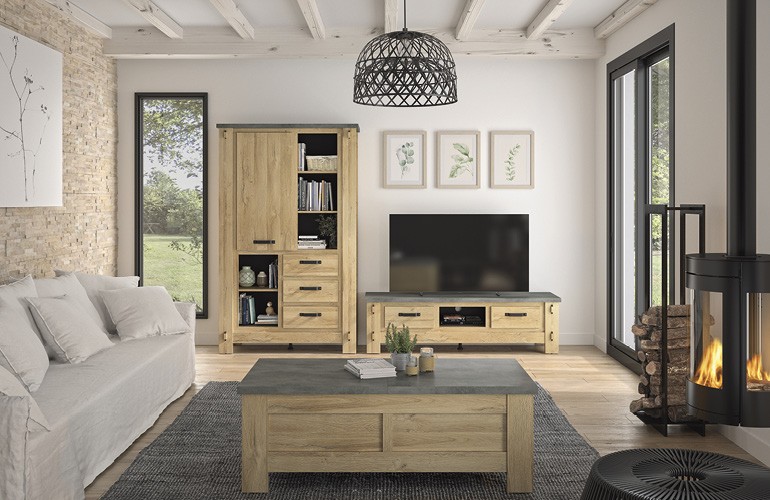 - panneaux de particules finition chêne clair, dessus finition béton minéral