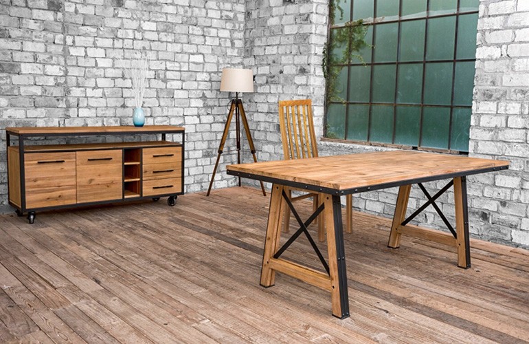 - Table repas Industriel en bois acacia